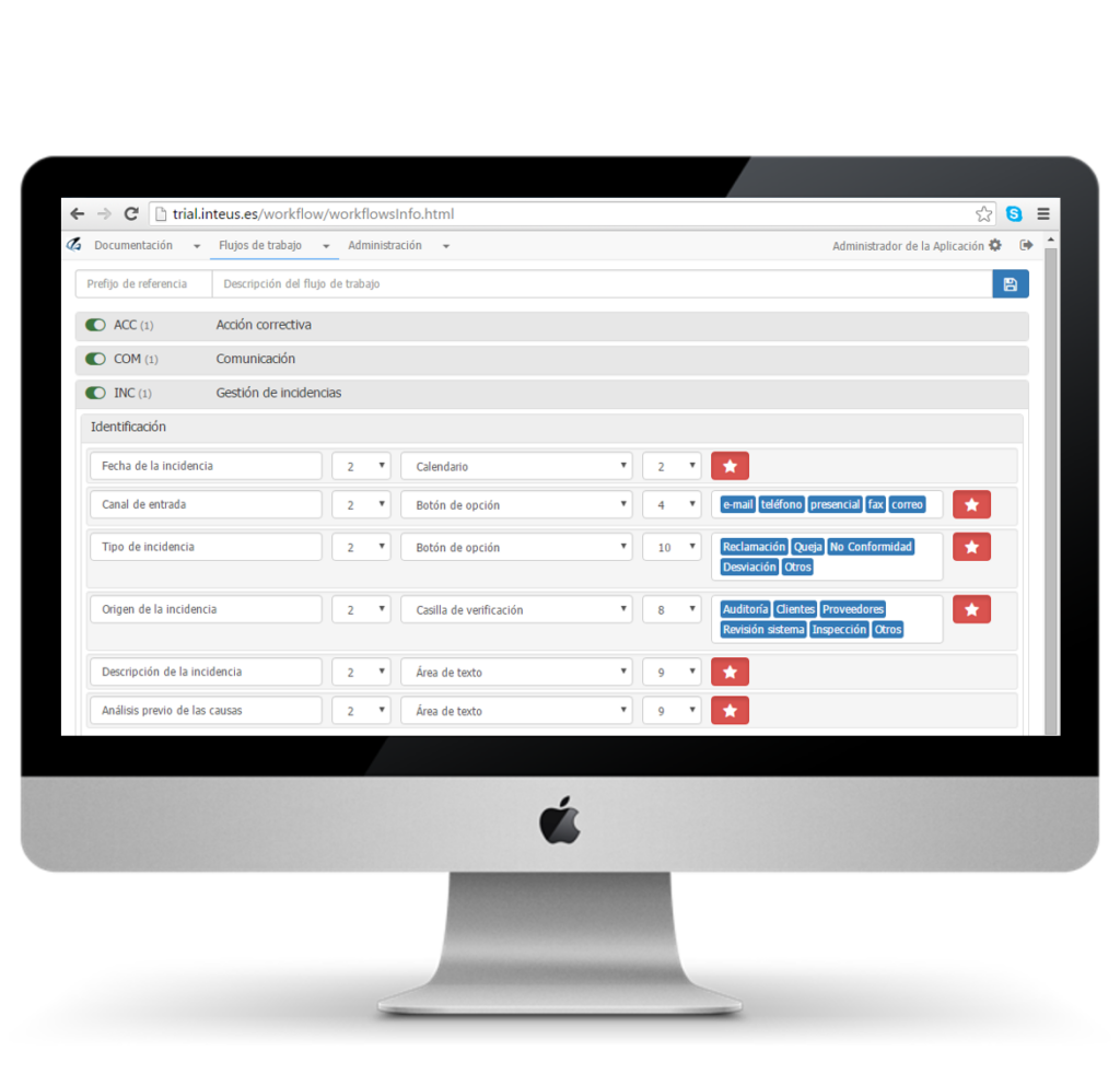 La forma de trabajo de una organización suele definirse en los procedimientos del sistema de gestión de calidad, medio ambiente, seguridad, etc. inteus permite modelizar, de una forma muy sencilla, la secuencia de tareas que se recogen en dichos procedimientos.